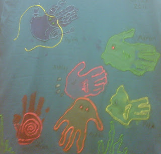 This concept would transfer well to a cloth bag for a sweet gift, or even to paper for a fun craft project. Use it as part of an Under the Sea unit or for a party craft - have fun with it! Ask your children to interpret what they see in different handprints or shapes and add some touches to make them unforgettable!